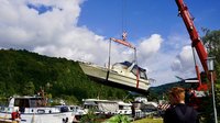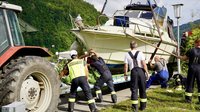 Nach Lageerkundung wurde die Feuerwehr Ried mit Kranfahrzeug nachalarmiert, um das Boot aus dem Hafen bergen zu können. Auf Befehl vom Einsatzleiter unterstützte die Kranmannschaft sodann die Kameraden der FF Ried.