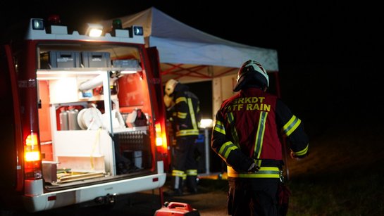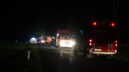 Kollision zweier PKW‘s mit eingeklemmten Personen. Zudem fing ein Fahrzeug Feuer und der Fahrer eines Fahrzeugs war abgängig. Die FF St. Roman führte die Rettung der eingeklemmten Personen durch und konnte mittels Drohne die abgängige Person rasch lokalisieren. Aufgabe der FF Rain war, die Zubringerleitung weiterzubauen, die Brandbekämpfung durchzuführen bzw. die Ausbreitung des Feuers auf den angrenzenden Wald zu verhindern.
