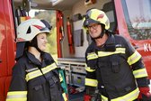 Zwei Kameradinnen unserer Feuerwehr kümmerten sich um das Kühlen der Gasflaschen, um eine mögliche Explosionsgefahr zu verhindern.